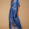 Dancing Leopard “MAKUNA IN BRIGHT BLUE LEOPARD” kaftan kleit