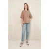 Line on mõnusalt avara lõikeline t-särk, mis valmistatud öko-tex märgistusega trikotaazkangast. T-särgil on mõnusad pikendatud õlaga varrukad ning alumises vasakus ääres Nola silt. Kangas: 95% puuvill 5% elastan. T-särki pesta 40 kraadises vees, triikimine lubatud.