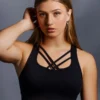 Eespool olevad nöörid muudavad rinnahoidja tagasihoidlikust pisut kuumemaks, kuid samal ajal on neil ka oma eesmärk- hoida kõike paigas omal kohal nii, et kummardades, ei tekiks momenti, kus peaksid muretsema, et kas miskit on välja paista. Seljaosa on avatud, et saaks kanda särke, mis on avarama seljaosaga. Rinnahoidja suurust saab ise reguleerida tagapool oleva rinnahoidja haagiga (3 erinevat võimalust). Seda toppi võid sobitada ükskõik milliste trenniretuusidega või miks mitte ka mõnel üritusel pintsakuga.